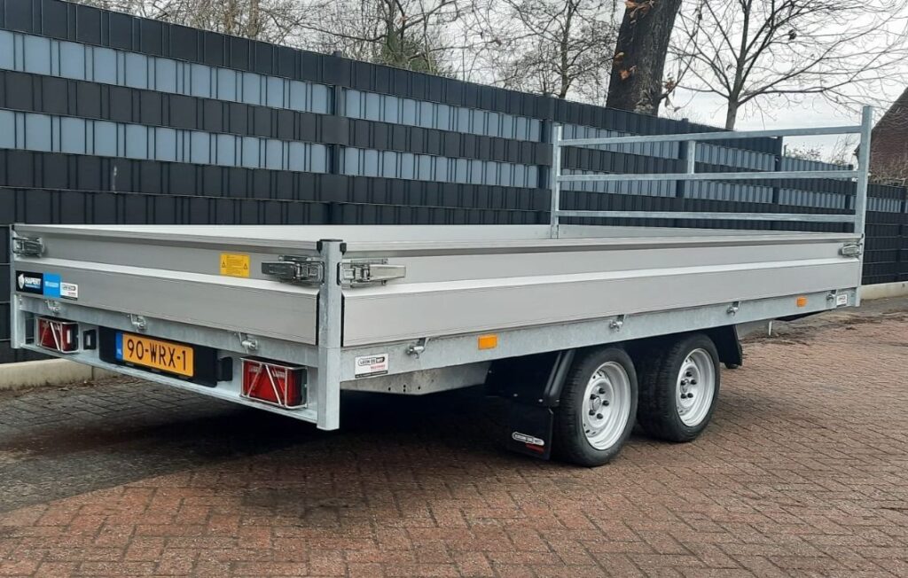 Hapert Azure aanhangwagen met een open laadvloer. De Hapert Azure is geschikt voor het vervoeren van materialen, machines en bouw- of landbouwladingen.